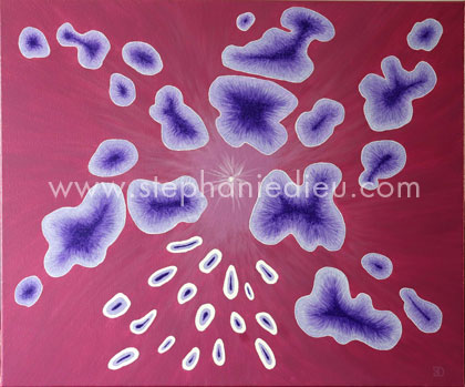 Les peintures présentées dans ce groupe sont abstraites. Abstrait, ici, ne signifie pas issu de rien, sans forme ni idée. Ces tableaux sont inspirés de l'environnement, de tout ce qui nous entoure (plantes, insectes, textures, arts ). Ce ne sont parfois que des détails mais que je trouve toujours beaux et révélateurs de la richesse créative naturelle et humaine. Outre le plaisir des yeux, l'idée, en regardant ces oeuvres, est de rechercher ce qui les a inspirées, quelle est leur source. Cela nous pousse à nous intéresser à ce qui fait partie de notre monde (végétal, minéral, animal, humain ), être conscient de l'univers dont on fait partie, s'ouvrir à de nouveaux horizons, changer notre regard. Il s'agit finalement de voir ce que nous ne regardions pas ou pas attentivement.